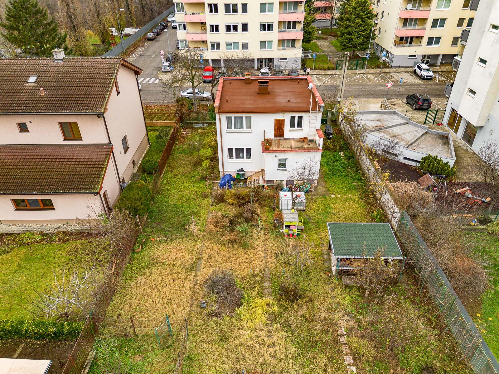 Ponúkame na predaj rovinatý pozemok o výmere 686m2 s rodinným domom v dynamickej mestskej časti Bratislava Ružinov - Trnávka - ul. Na Križovatkách.