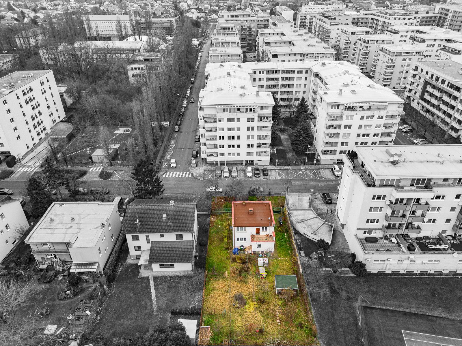 Ponúkame na predaj rovinatý pozemok o výmere 686m2 s rodinným domom v dynamickej mestskej časti Bratislava Ružinov - Trnávka - ul. Na Križovatkách.