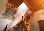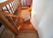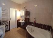Prvé poschodie – vstupná chodba, obývacia izba spojená s kuchyňou s oknom a so vstupom na balkón, kúpeľňa s oknom, s rohovou vaňou, umývadlom a WC