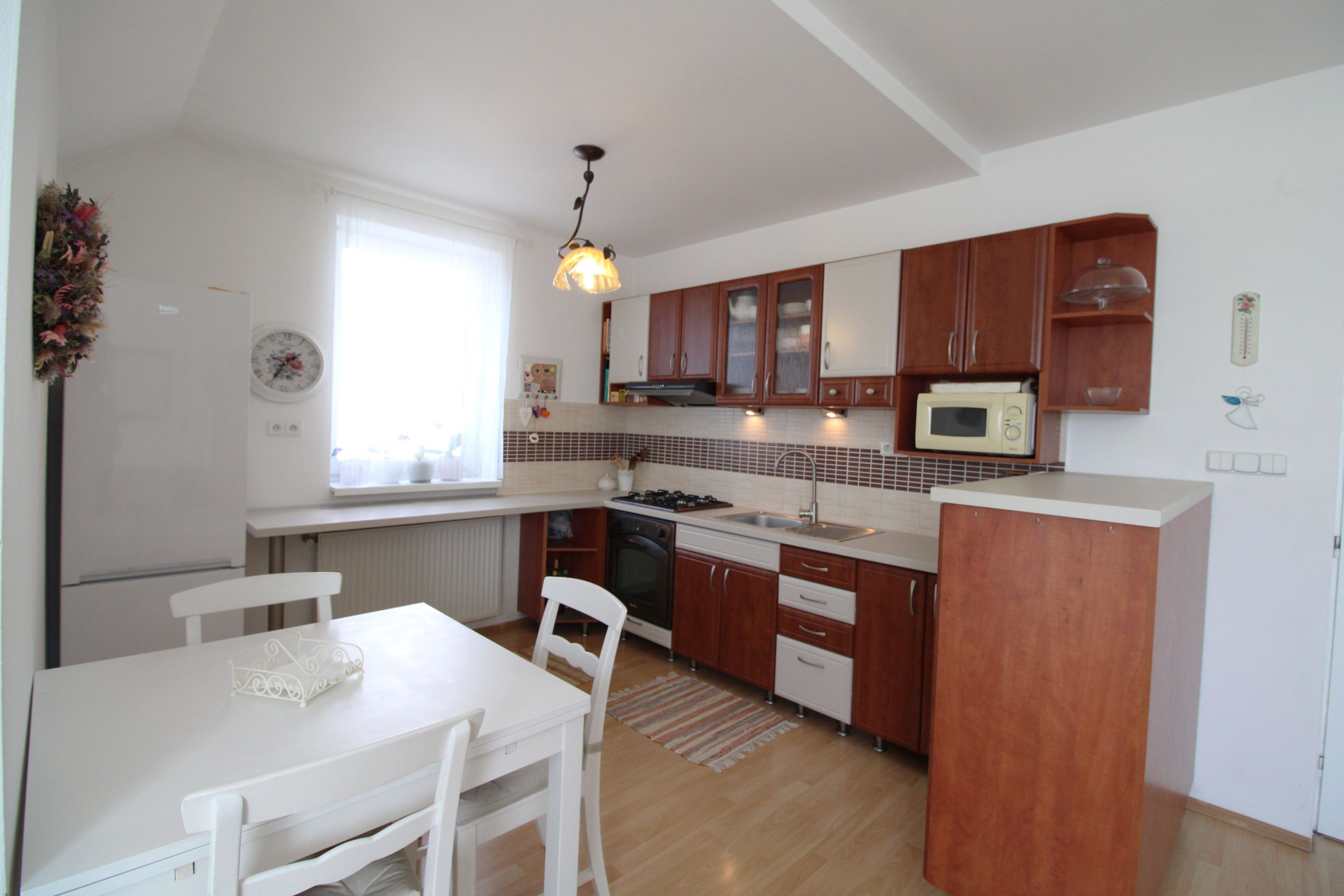 priestranná kuchynská linka, kompletne vybavená zabudovanými spotrebičmi: ARDO – plynový šporák, elektrická rúra, digestor