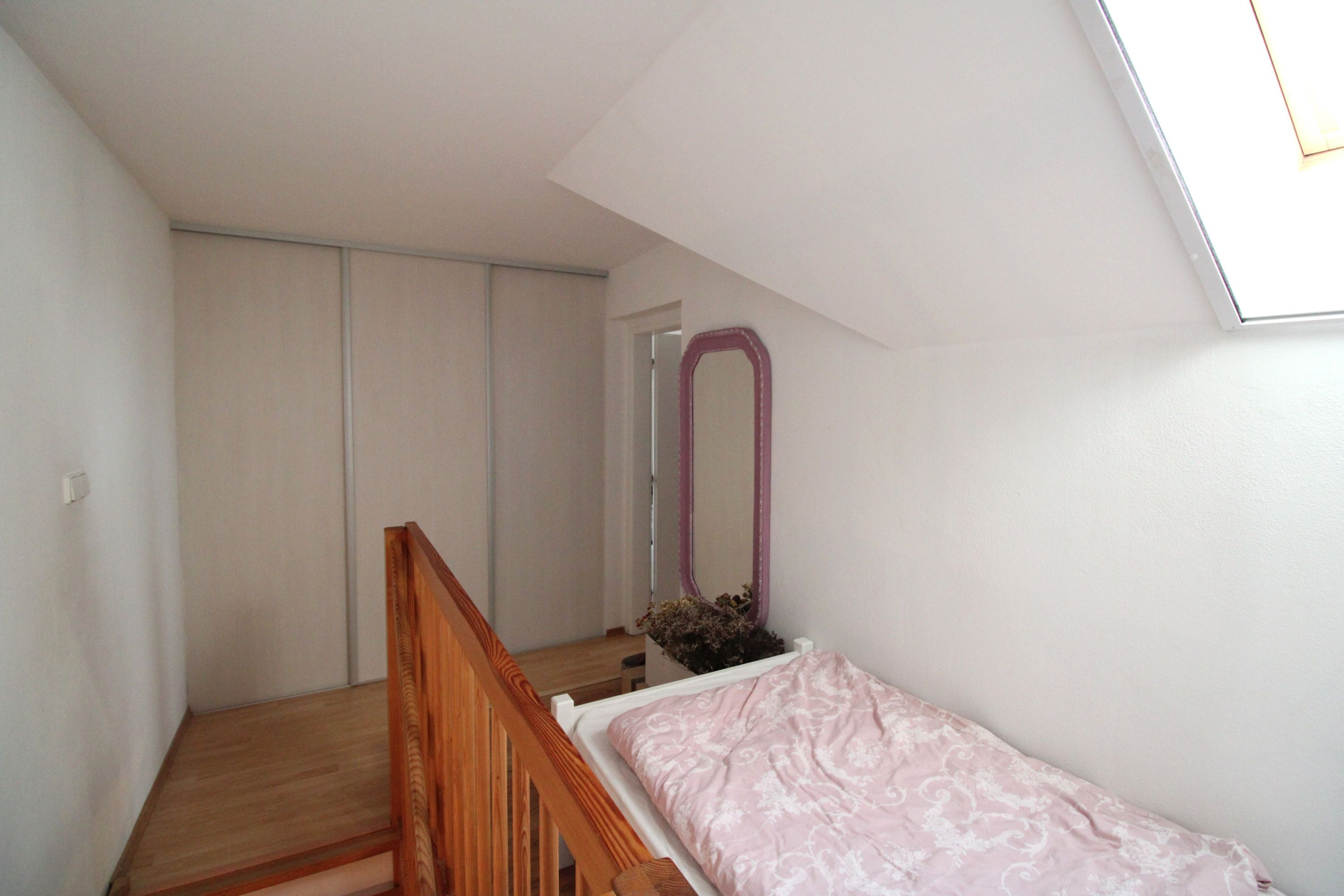 Druhé poschodie – chodba so samostatným šatníkom a posuvnými dverami, samostatná spálňa