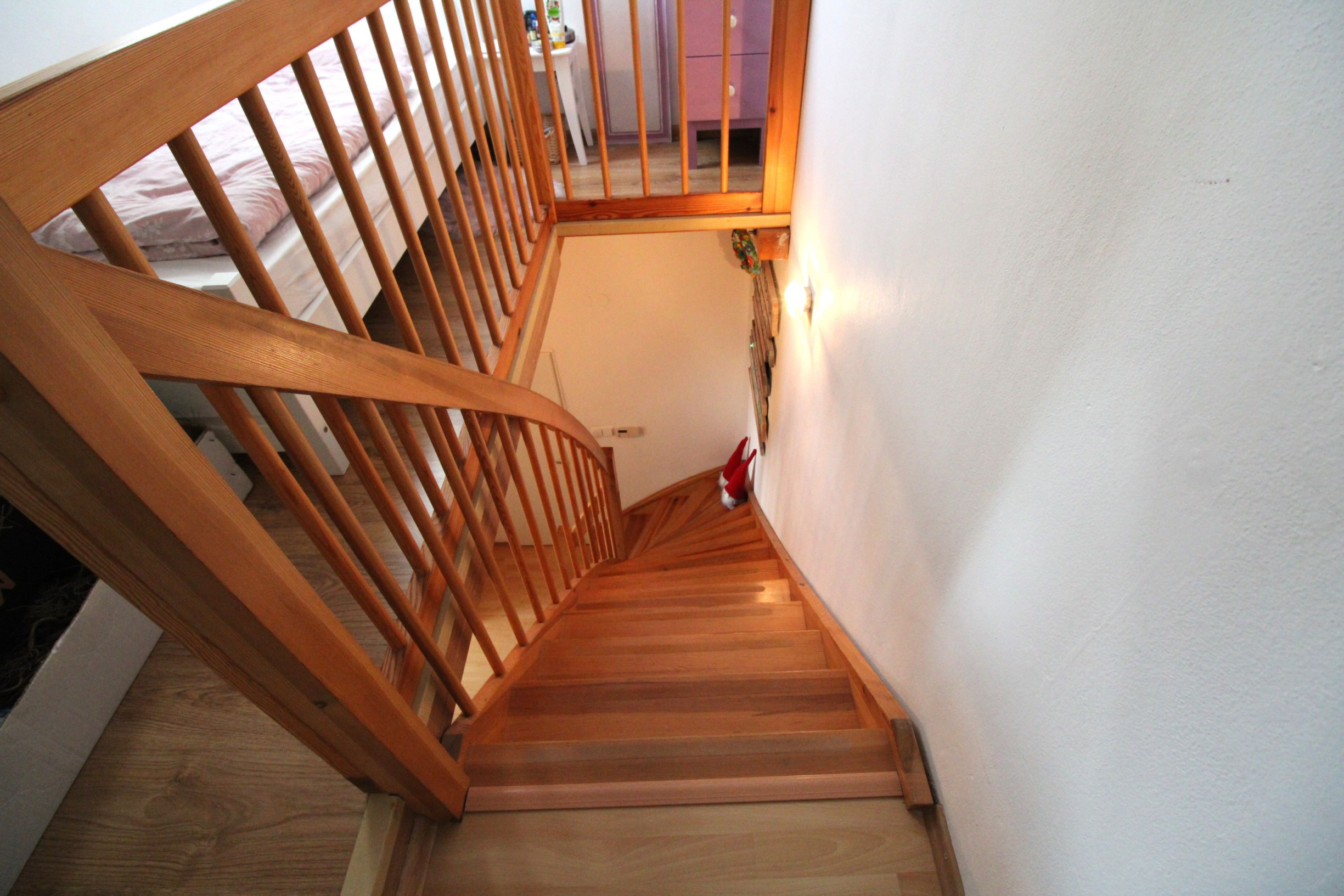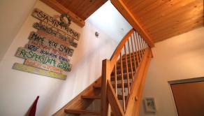 Prvé poschodie – vstupná chodba, obývacia izba spojená s kuchyňou s oknom a so vstupom na balkón, kúpeľňa s oknom, s rohovou vaňou, umývadlom a WC